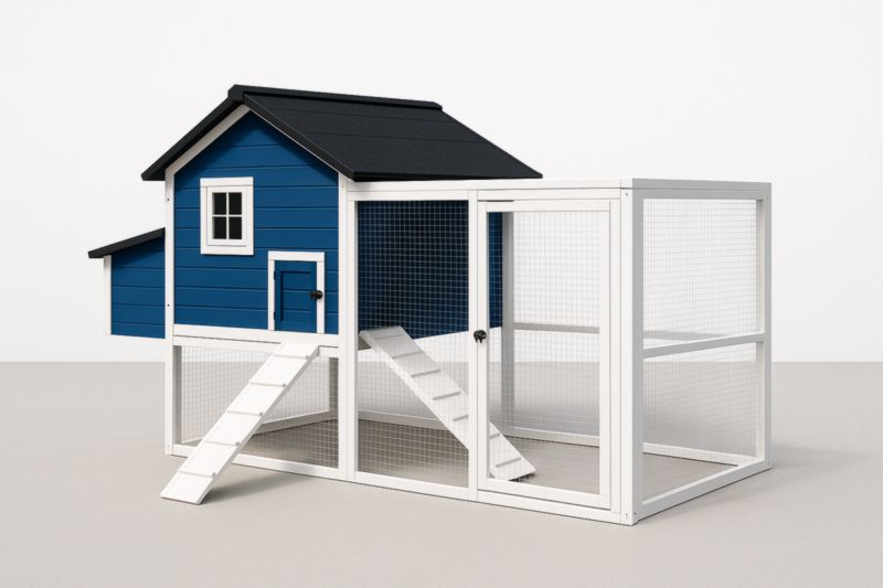 Poulailler extérieur en bois de pin bleu et blanc 220x120x125 cm(L×l×H)